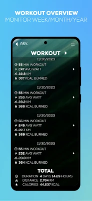 - Workout history: Keep track of the indoor cycling workouts. Get an overview of all past workouts and track improvement.