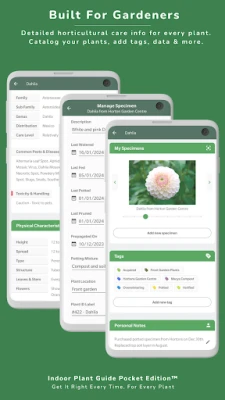 Our app has been carefully crafted as a plant encyclopedia, with advice designed to help gardeners understand the specific individual needs and aftercare requirements of their known species.